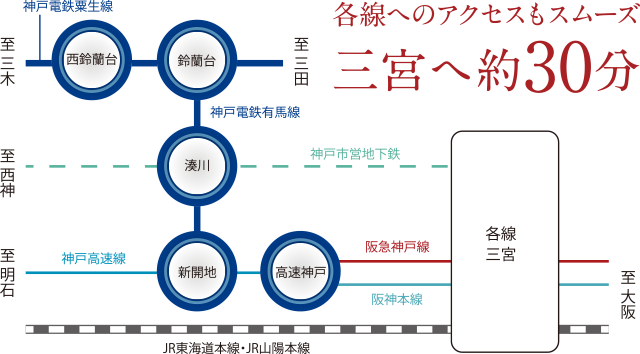 三宮からのアクセスの良さが、この街の暮らしを“ちょうどいい神戸”にしてくれます。